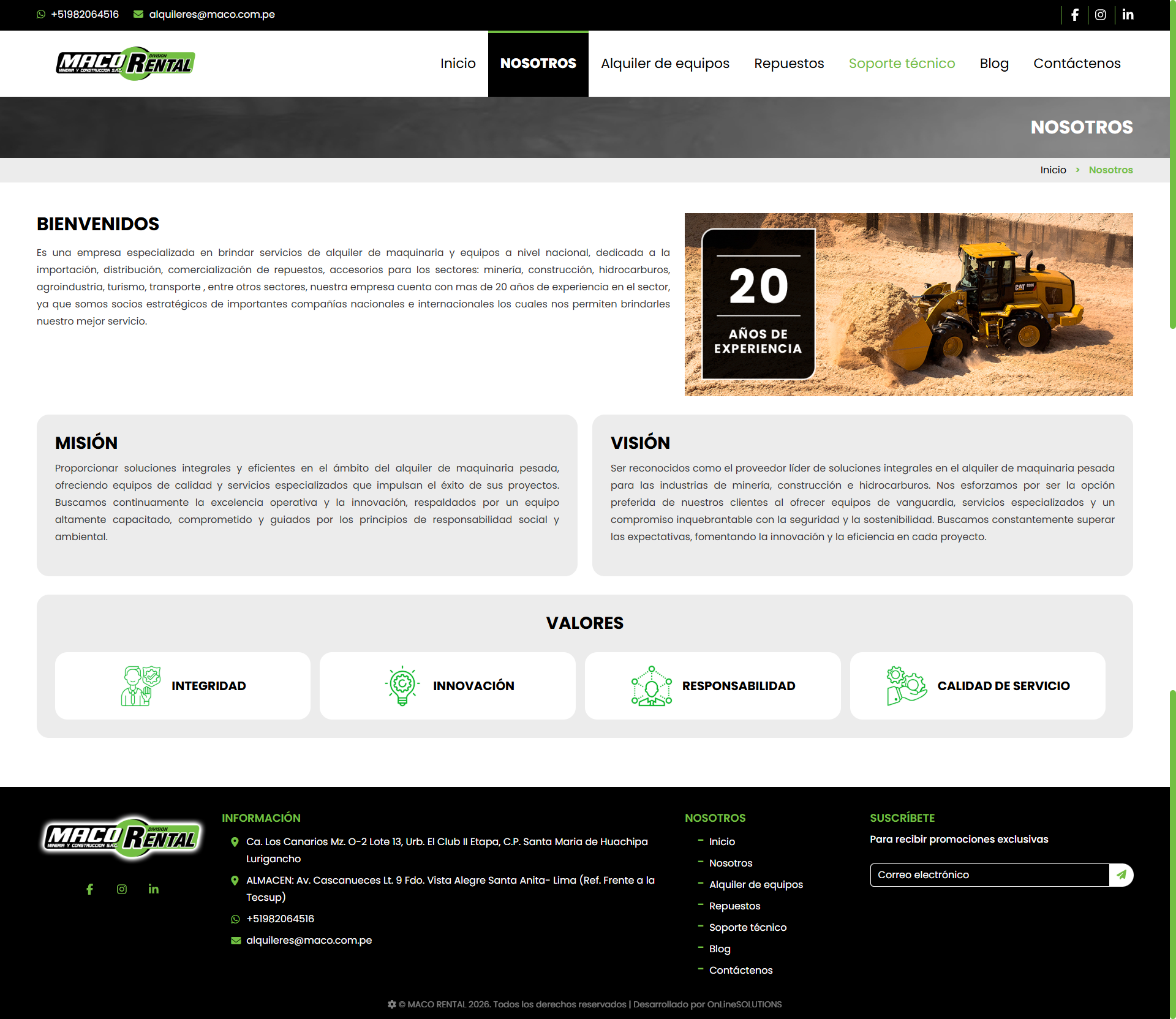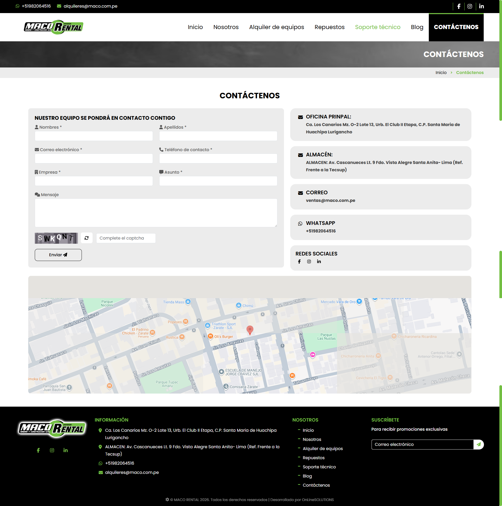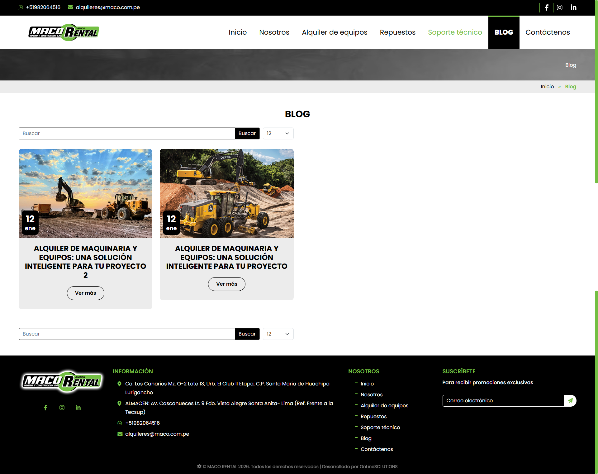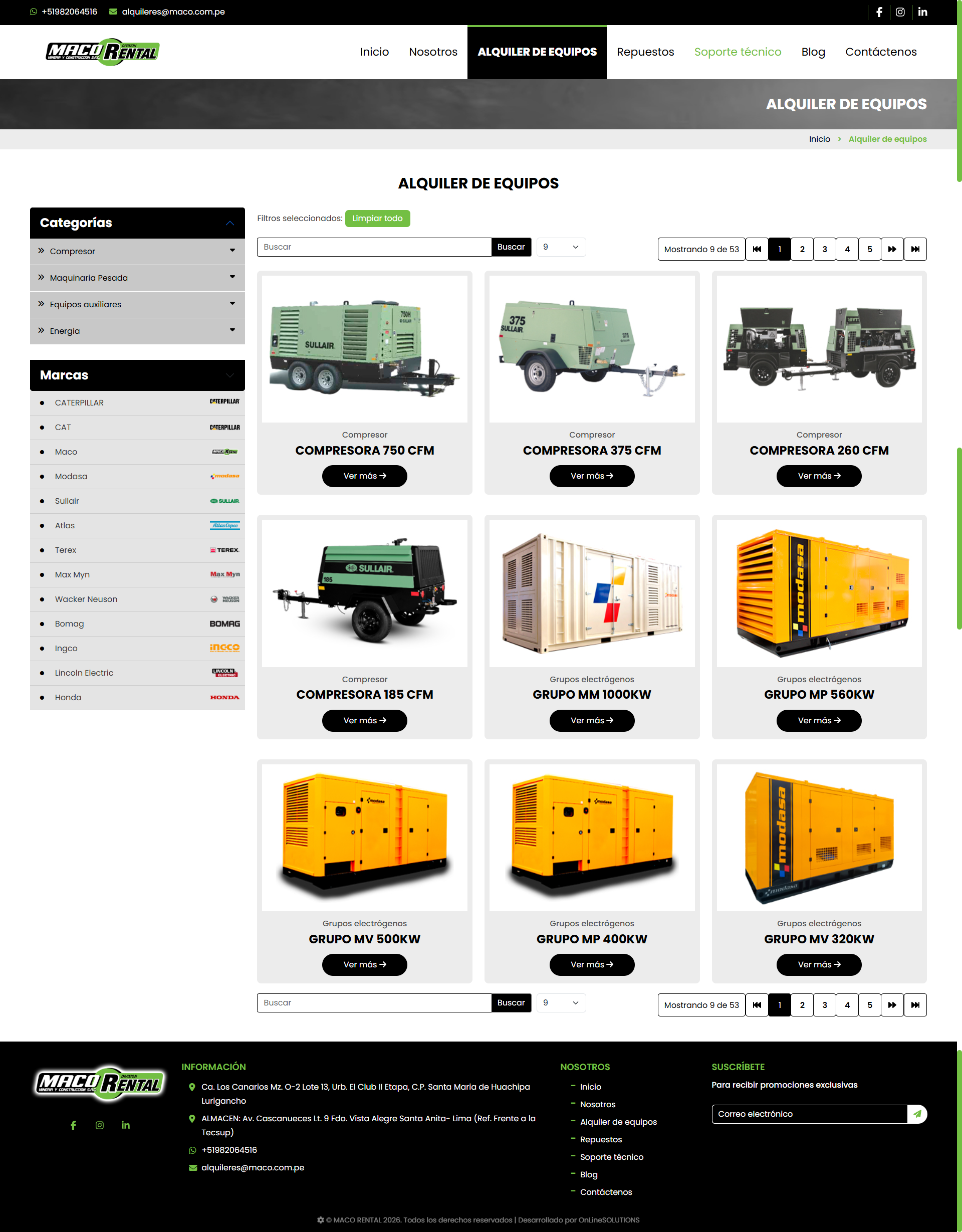 Desarrollo de un sitio web administrable con CMS a medida para la gestión de alquiler de equipos. El frontend se desarrolló utilizando HTML5, CSS3 con Bootstrap y JavaScript, garantizando una experiencia responsiva y atractiva.